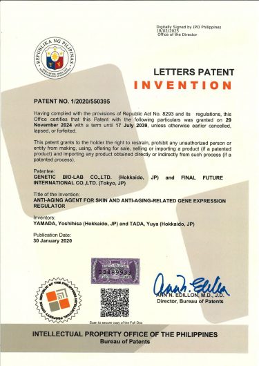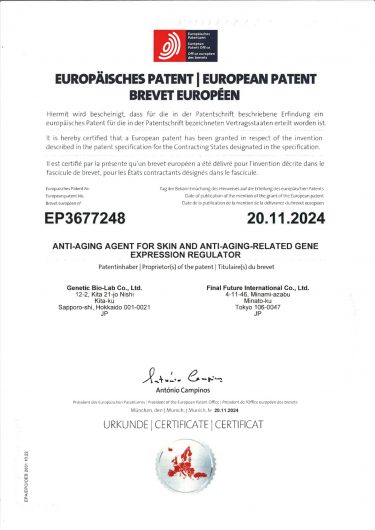 「Applied the patent for ‘Anti-aging for skin and anti-aging-related gene expression regulator’」Patent overview